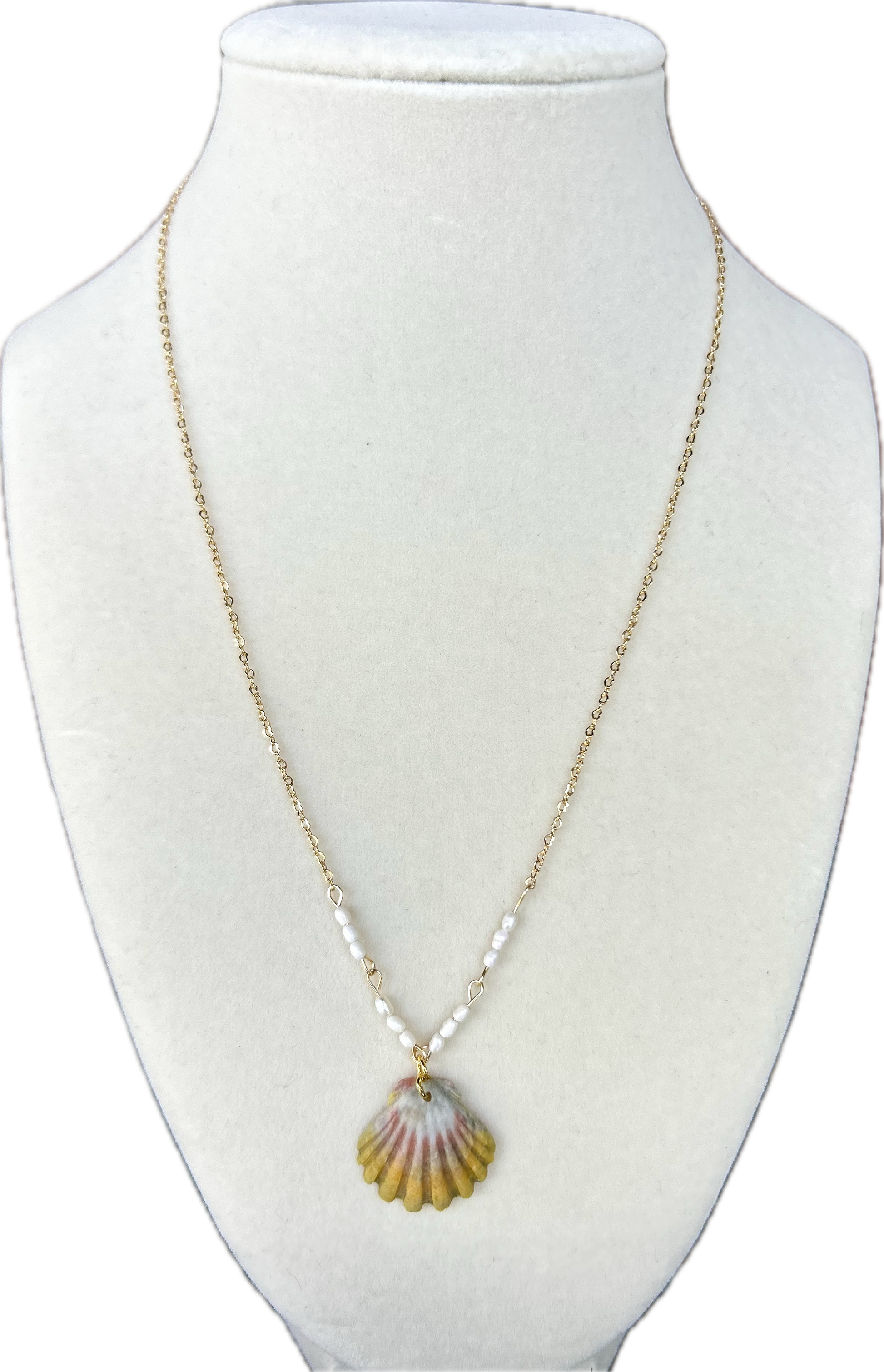 Accented with dainty freshwater pearls and gold-filled chain, this design balances the raw beauty of the sea with timeless elegance. The pearls symbolize purity and grace, while the moonrise shell is cherished as a Hawaiian treasure of transformation and resilience, believed to connect the wearer with the rhythm of the tides and the energy of renewal.